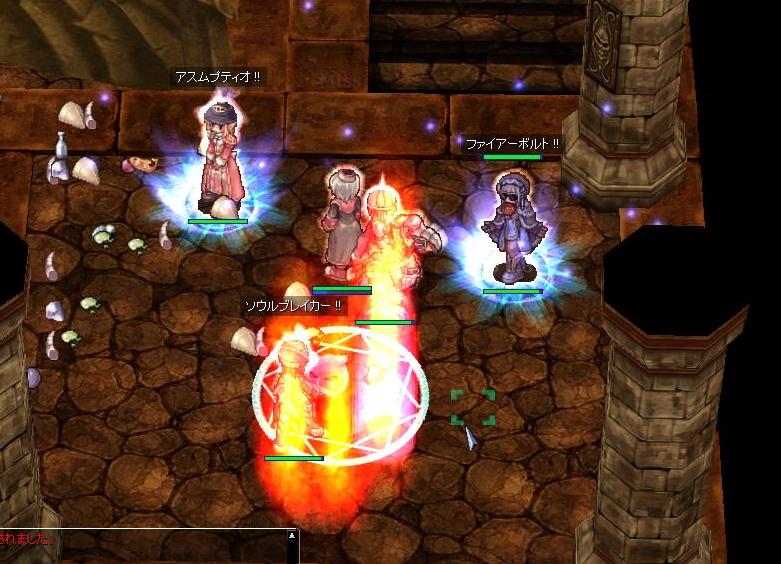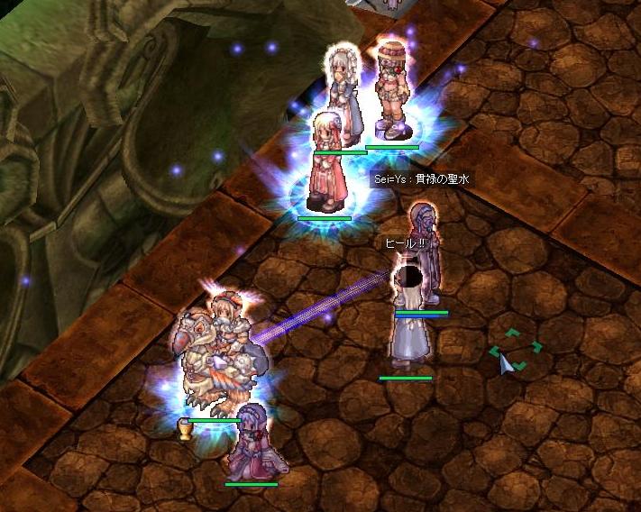 前衛が抱えてSGが展開されているところに剣が寄って来たのですが、SG位置がやや奥だったためこっちにタゲがきちゃって、前衛さんHPさんともにタゲを取り返そうとして・・・と言う感じだったと記憶してます。